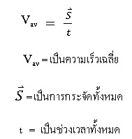 ความเร็วเฉลี่ย (Average velocity) หมายถึงการกระจัดของวัตถุที่เคลื่อนที่ได้ต่อหนึ่งหน่วยเวลาทั้งหมด