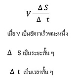 "วัตถุที่เคลื่อนที่ด้วยอัตราเร็วสม่ำเสมอ อัตราเร็วขณะใดขณะหนึ่ง กับอัตราเร็วเฉลี่ยมีค่าเท่ากัน"