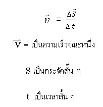 ความเร็วขณะหนึ่ง (Instaneous velocity) หมายถึง การกระจัดของวัตถุที่เคลื่อนที่ได้ต่อหนึ่งหน่อยเวลาสั้น