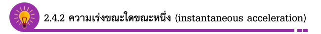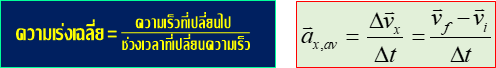 คือ ความเร่งในช่วงเวลาหนึ่งๆ เขียนแทนด้วยสัญลักษณ์นี้ เวลา