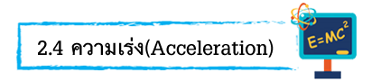 (1) คืออัตราการเปลี่ยนความเร็ว พิจารณาจากคำนิยาม ความเร่ง ความเร่ง - 2 เมตร/วินาที2 หมายถึง ความเร็วลดลง 2 m/s ทุกๆ 1 วินาที ทบทวนหัวข้อที่ผ่านมา