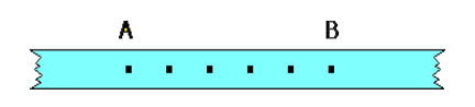 การคำนวณหาอัตราเร็วจากจุดที่ปรากฎบนแถบกระดาษ t หาจาก ช่วงจุดจาก A ถึง B คือ 5 ช่วงจุด คูณด้วย