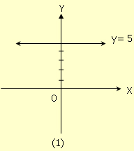 (1) เส้นตรงที่ขนานกับแกน x และอยู่เหนือแกน x เป็นระยะ 5 หน่วย มีสมการเป็น y = 5