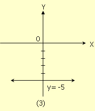 (3) เส้นตรงที่ขนานกับแกน x และอยู่ใต้แกน x เป็นระยะ 5 หน่วย มีสมการเป็น y = -5