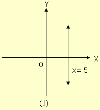 (1) เส้นตรงที่ขนานกับแกน y และอยู่ทางขวาของแกน y เป็นระยะ 5 หน่วย มีสมการเป็น x = 5