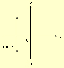 (3) เส้นตรงที่ขนานกับแกน y และอยู่ทางซ้ายของแกน y เป็นระยะ 5 หน่วย มีสมการเป็น x = -5