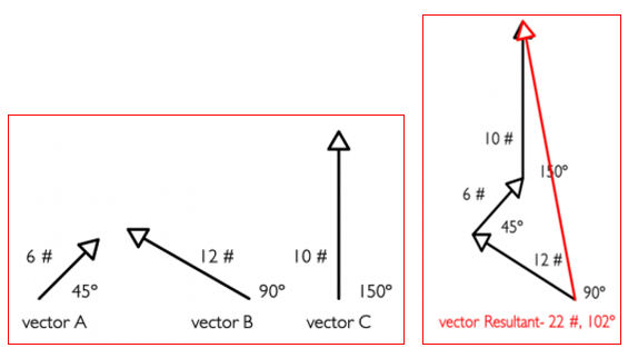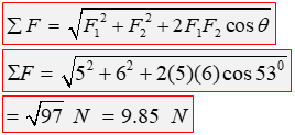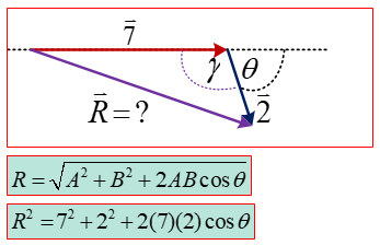 การรวมเวคเตอร์ โดยการเขียนรูป 1. ขนาดของเวคเตอร์ลัพธ์ หาได้จากการวัดความยาวของเส้นลูกศร (อาจต้องเทียบอัตราส่วน) 3.2.2 การหาขนาดและทิศทางของแรงลัพธ์โดยการคำนวณ แยกพิจารณาได้เป็น 3 ลักษณะคือ 1. กรณีทำมุมแหลมต่อกัน