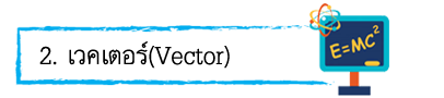 (1) การเขียนเวคเตอร์ (1.1) ใช้ตัวอักษร เช่น (1.2) ใช้ลูกศรแทน โดยความยาวลูกศรจะแสดงขนาด และหัวลูกศรแสดงทิศทางของเวกเตอร์ เช่น เวคเตอร์ A ขนาด 4 หน่วย ทิศทำมุม 45๐ กับแกน +x