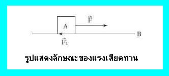 ถ้าวาง A อยู่บนวัตถุ B ออกแรง ลากวัตถุ วัตถุ A จะเคลื่อนที่หรือไม่ก็ตาม จะมีแรงเสียดทานเกิดขึ้นระหว่างผิวของ A และ B แรงเสียดทานมีทิศทางตรงกันข้ามกับแรง ที่พยายามต่อต้านการเคลื่อนที่ของ A