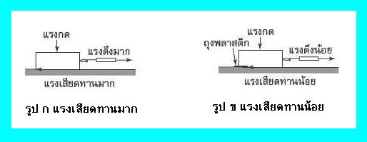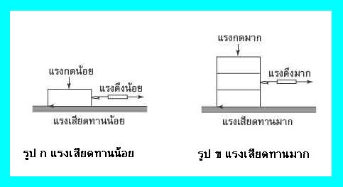 6. แรงเสียดทานขึ้นอยู่กับน้ำหนักหรือแรงกดของวัตถุที่กดลงบนพื้น ถ้าน้ำหนักหรือแรงกดมากแรงเสียดทานก็จะมากขึ้นด้วย