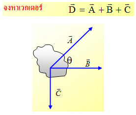 ตัวอย่าง เมื่อมีแรง A B และ C มากระทำต่อวัตถุ ดังรูป
