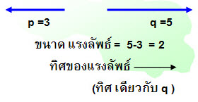 2.2. เมื่อแรงทำมุมกัน 180 องศา (ทิศทางตรงข้าม) แรงลัพธ์ = แรงมากลบด้วยแรงน้อย ทิศของแรงลัพธ์มีทิศเดียวกับแรงมาก