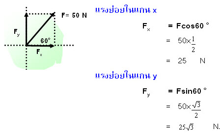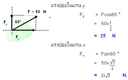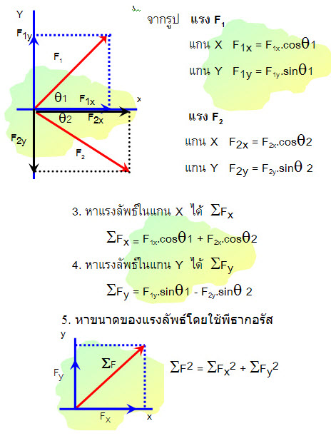 2.5 ถ้ามีแรงหลาย ๆ แรงมากระทำกับวัตถุ การหาแรงลัพธ์ หาได้โดยวิธีการแตก แรงเข้าสู่แกนตั้งฉาก