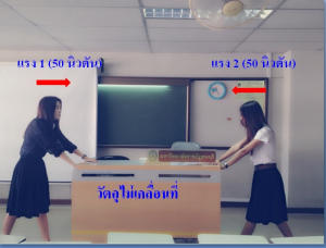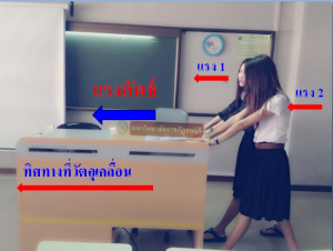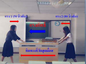 2. หากแรง 2 แรง ผลักวัตถุไปตามพื้นราบในทิศทางตรงข้ามกัน หากแรงด้านใดมีมากกว่า วัตถุจะเคลื่อนที่ไปตามทิศทางของแรงนั้น ดังรูป