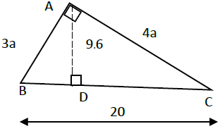 7. รูปสามเหลี่ยม ABC มี BÂC = 90°, AD ตั้งฉากกับ BC ที่ D, AB = 3a, AC = 4a, BC = 20, AD = 9.6 จงหาค่า a