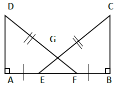 จากรูป DA⊥AB, CB⊥AB, AE = BF และ DF = CE, ด้วยความสัมพันธ์ตามข้อใด