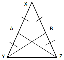 12. จากรูป XY = XZ และ A, B เป็นจุดกึ่งกลางของด้าน XY และ XZ ตามลำดับ ข้อใดเป็นจริง