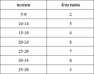 ในการสอบวิชาสถิติมีนักเรียนเข้าสอบ 35 คน ทำคะแนนดังตารางที่กำหนดให้