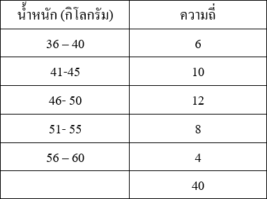 2. ชั้นที่มีความถี่สูงสุดมีจุดกึ่งกลางชั้นเท่ากับ 47.5 |