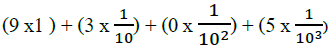 1. 9 + (3 x 10) + (0 x 100) + (5 x 1000) |