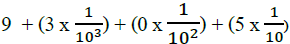 2. (9 x 103) + (3 x 102) + (0 x 10) + (5 x 1) |