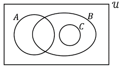 20. กำหนดให้ A, B และ C เป็นเซตที่มีความสัมพันธ์ดังแผนภาพ ข้อใดถูก