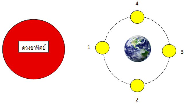 15. เมื่อดวงจันทร์โคจรไปยังตำแหน่งที่ 3 คนบนโลกเห็นดวงจันทร์มีลักษณะอย่างไร