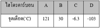 2. สารC และD มีสถานะเป็นแก๊สที่ 28 ˚C |