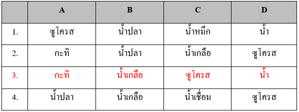3. น้ำพริก,น้ำนมสด,น้ำเชื่อม |