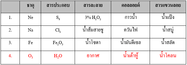 | 20. ข้อใดที่ยกตัวอย่างสารแต่ละประเภทถูกต้อง |