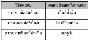 3. ถ้าหยดอินดิเคเตอร์ชนิดนี้ลงในสาร A แล้วเปลี่ยนเป็นสีม่วงแดง แสดงว่าสาร A เป็นเบส |