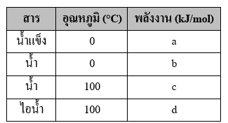 ถ้าน้ำแข็งที่ 0°C เปลี่ยนสถานะเป็นไอน้ำที่ 100°C ที่ความดัน 1 บรรยากาศ จะต้องใช้พลังงานกี่กิโลจูลต่อโมล |